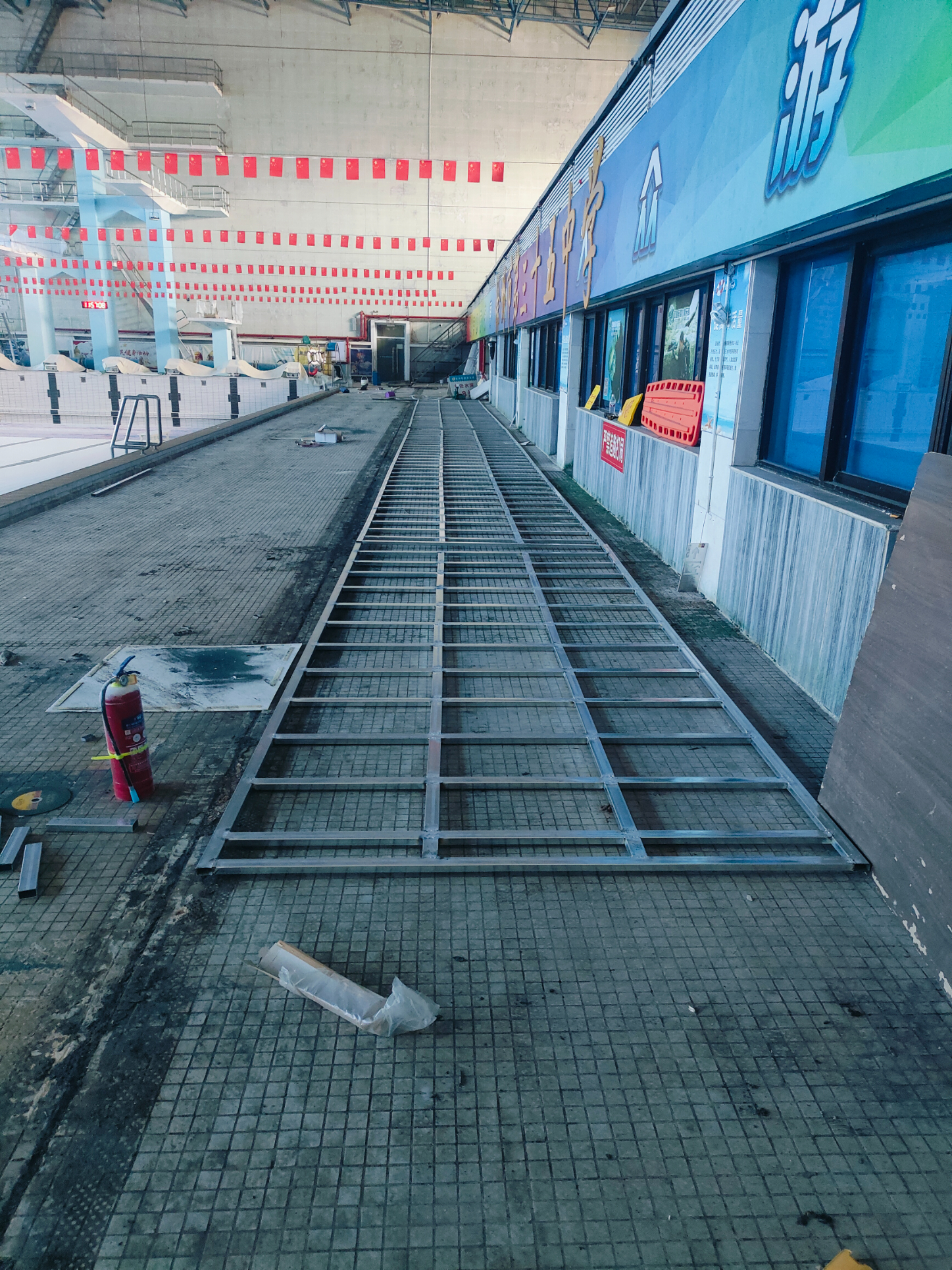 雅努思公司展陳事業(yè)部施工人員以嚴(yán)謹(jǐn)認(rèn)真的態(tài)度對待此次裝修改造項(xiàng)目!在本次項(xiàng)目中我們對御林軍游泳館的玻璃幕墻、門頭廣告、門廳進(jìn)行升級改造,男、女更衣室以及對淋浴間整體管線鋪設(shè)!原鐵路游泳館建于1995年12月距今30余年,因時(shí)間較久淋浴間設(shè)施老化已無法滿足現(xiàn)在人們的需求,如管道銹蝕、易積水所以我們對其整個進(jìn)行管道重新鋪設(shè)并做好防水功能!