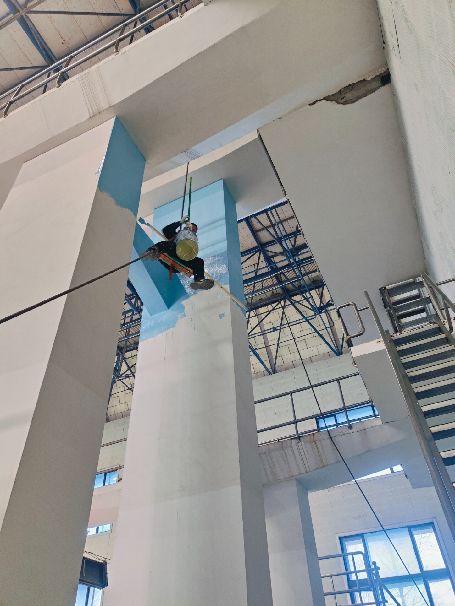 國標(biāo)泳池跳臺,我們的施工勇士正身著安全繩以墻為紙、以刷為筆、以漆為墨確保安全的情況下,將跳臺刷的完美、漂亮!跳臺以一種全新的視覺面貌展現(xiàn)在眼前!因?yàn)閳龅貪駳獯螅h(huán)境特殊,裝修材料及工藝需考慮防腐蝕性能及防水、防潮性能穩(wěn)定,不發(fā)霉。