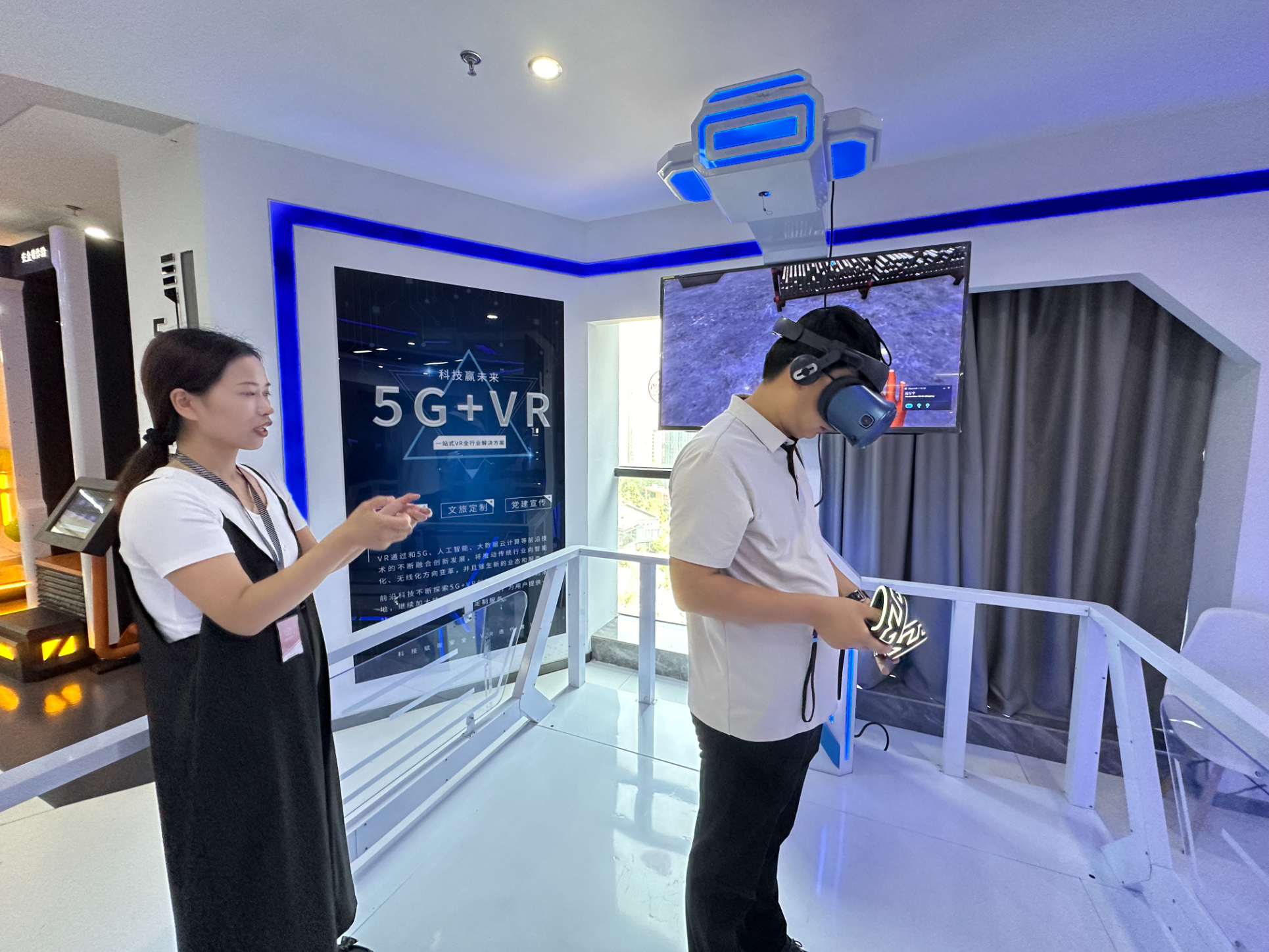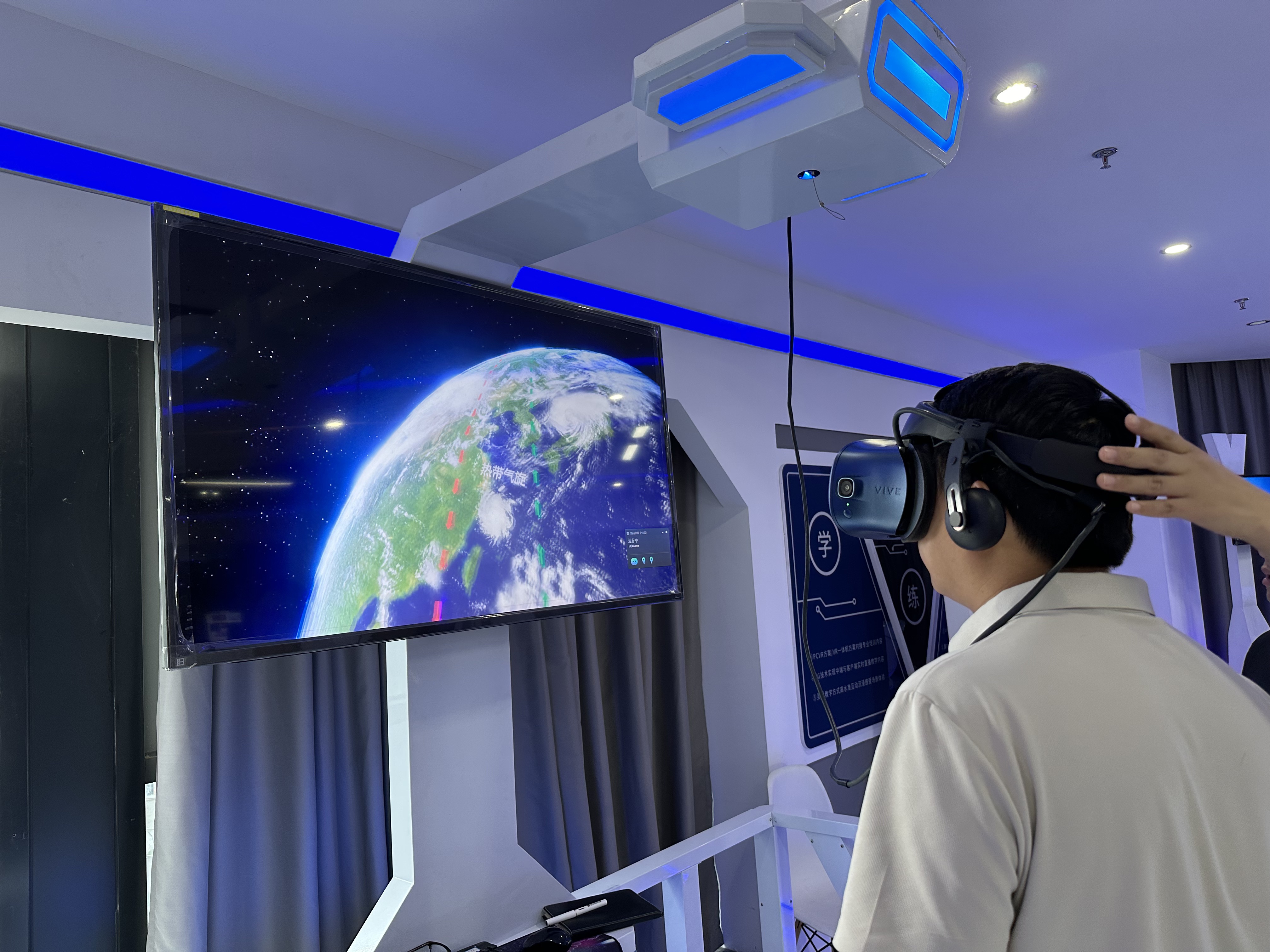 既然是智能化安全體驗(yàn)館,怎么能少了VR設(shè)備呢!第三個(gè)展區(qū)便是今天的壓軸戲---VR安全體驗(yàn)區(qū)。VR與安全體驗(yàn)結(jié)合的優(yōu)勢(shì)是它可以在虛擬現(xiàn)實(shí)中展現(xiàn)真實(shí)施工事故發(fā)生的場(chǎng)景,讓體驗(yàn)者學(xué)習(xí)正確的安全施工方法,身臨其境,鍛煉體驗(yàn)者應(yīng)對(duì)事故發(fā)生的應(yīng)急能力,通過虛擬現(xiàn)實(shí)更深刻的增強(qiáng)體驗(yàn)者的施工知識(shí)。圖為雅努思員工穿戴VR設(shè)備進(jìn)行安全體驗(yàn)。
