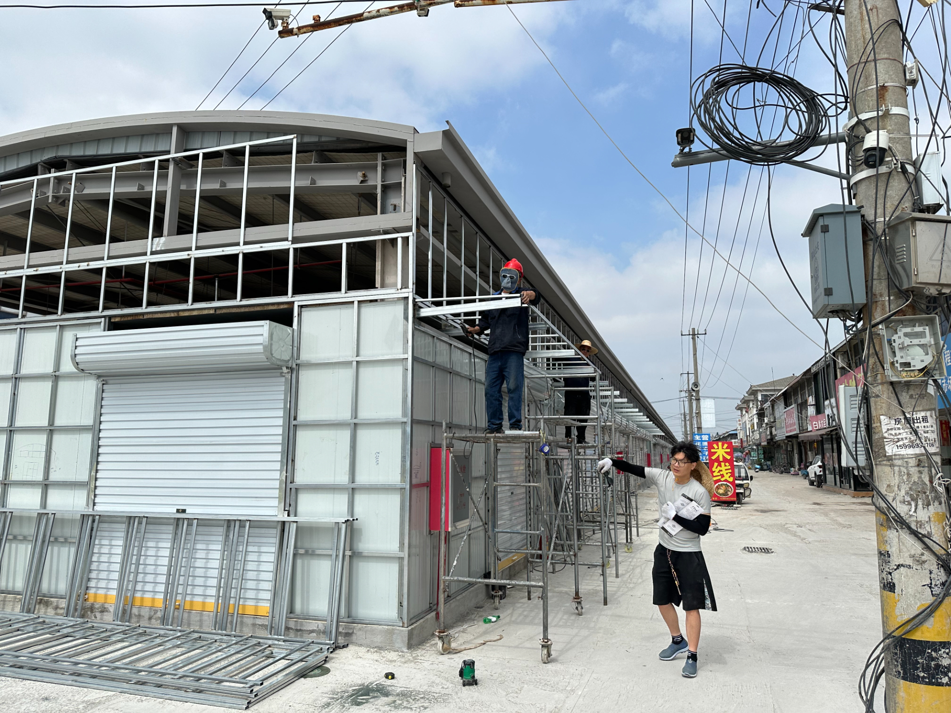 經(jīng)過(guò)三個(gè)月的改造工程,勝陽(yáng)村農(nóng)貿(mào)市場(chǎng)已從原來(lái)的雜亂無(wú)章、破舊不堪變?yōu)榫袟l、結(jié)構(gòu)完善的嶄新市場(chǎng)了。
