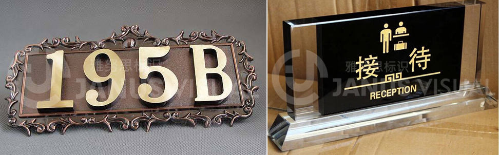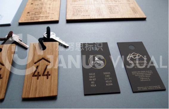 酒店標(biāo)識(shí)牌是一種應(yīng)用于酒店的廣告標(biāo)牌。酒店標(biāo)識(shí)系統(tǒng)是根據(jù)酒店整體設(shè)計(jì)風(fēng)格為導(dǎo)向,綜合解決酒店方向性引導(dǎo),視覺識(shí)別等運(yùn)行功能為前提配合酒店整體工程項(xiàng)目實(shí)施的其中一部分工程。主要用以突出酒店的風(fēng)格特色,主要制作材質(zhì)以紅木、金屬(銅、鐵、鋁、錫、鈦金、不銹鋼)為主,制作工藝較為復(fù)雜,選用材質(zhì)也很多。按照功能來(lái)劃分,酒店標(biāo)牌分大堂指示牌(如收銀)、樓層指示牌、門號(hào)牌、功能指示牌、時(shí)鐘指示牌、告示牌、房?jī)r(jià)牌、外幣兌換牌等。
