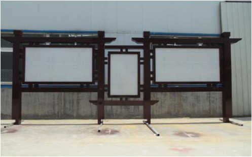 ?②鋼板和不銹鋼板的公告欄會采用鋼板烤漆的工藝,表面進(jìn)行防腐處理??陕裼诘孛嬉韵拢部捎门蛎浡萁z固定在硬化地板表面。為了遮擋陽光和雨水,宣傳欄一般會有頂棚。宣傳欄有前開門和后開門之分,前開門用玻璃鎖,后開門用普通鎖具就可以,內(nèi)容多是畫面或紙張內(nèi)容。木材的宣傳欄多用在園林中,這種宣傳欄不太實(shí)用,一般只能張貼戶外畫面。由于木質(zhì)的宣傳欄不能把內(nèi)容藏于玻璃內(nèi)部,只能在外面,所以內(nèi)容得不到保護(hù)。