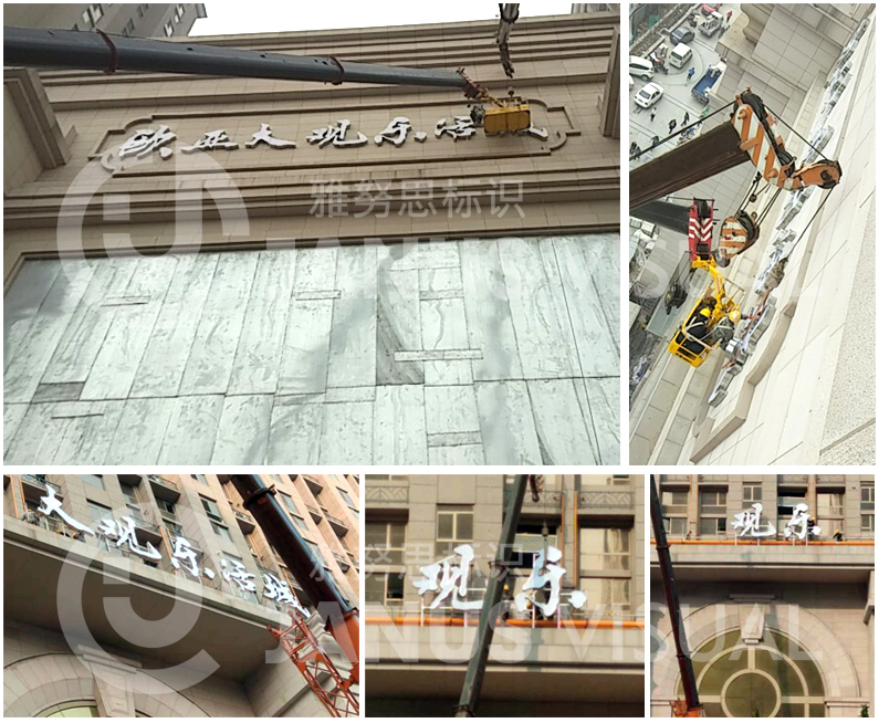 本月初由雅努思標識承接的濟南歐亞大觀樂活城發(fā)光字項目已順利安裝完畢!為什么要說順利二字呢?因為小編...有點恐高。來看看我們的安裝現(xiàn)場吧,是不是有點驚心動魄呢?字的尺寸非常大,而且安裝位置很高,給安裝增加了很大的難度,所以真的非常佩服我們雅努思標識的安裝工程師們,非常厲害,也非常敬業(yè)!從早晨9點一直裝到下午3點,耗時比較長,安裝完我們的工程師并沒有很快離開,而且等倒天黑以后,檢測完字的亮度以后才收拾工具趕回徐州??吹竭@里,還有什么理由不選擇雅努思標識呢?2019即將到來,我們會帶給大家完整的服務!