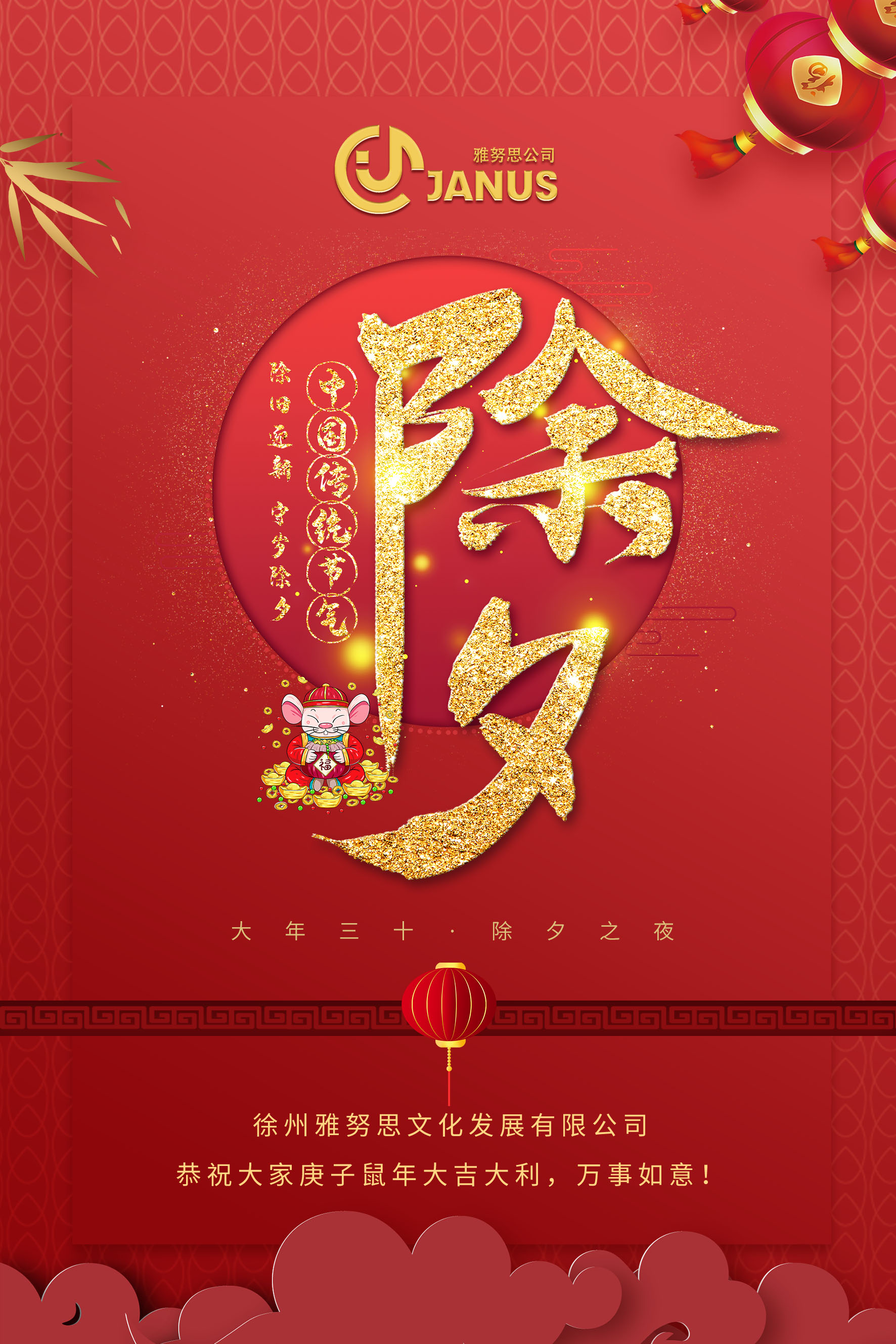 雅努思公司除夕三愿,愿大家:鼠年吉祥、家人安康、萬事順遂?。?/span>!