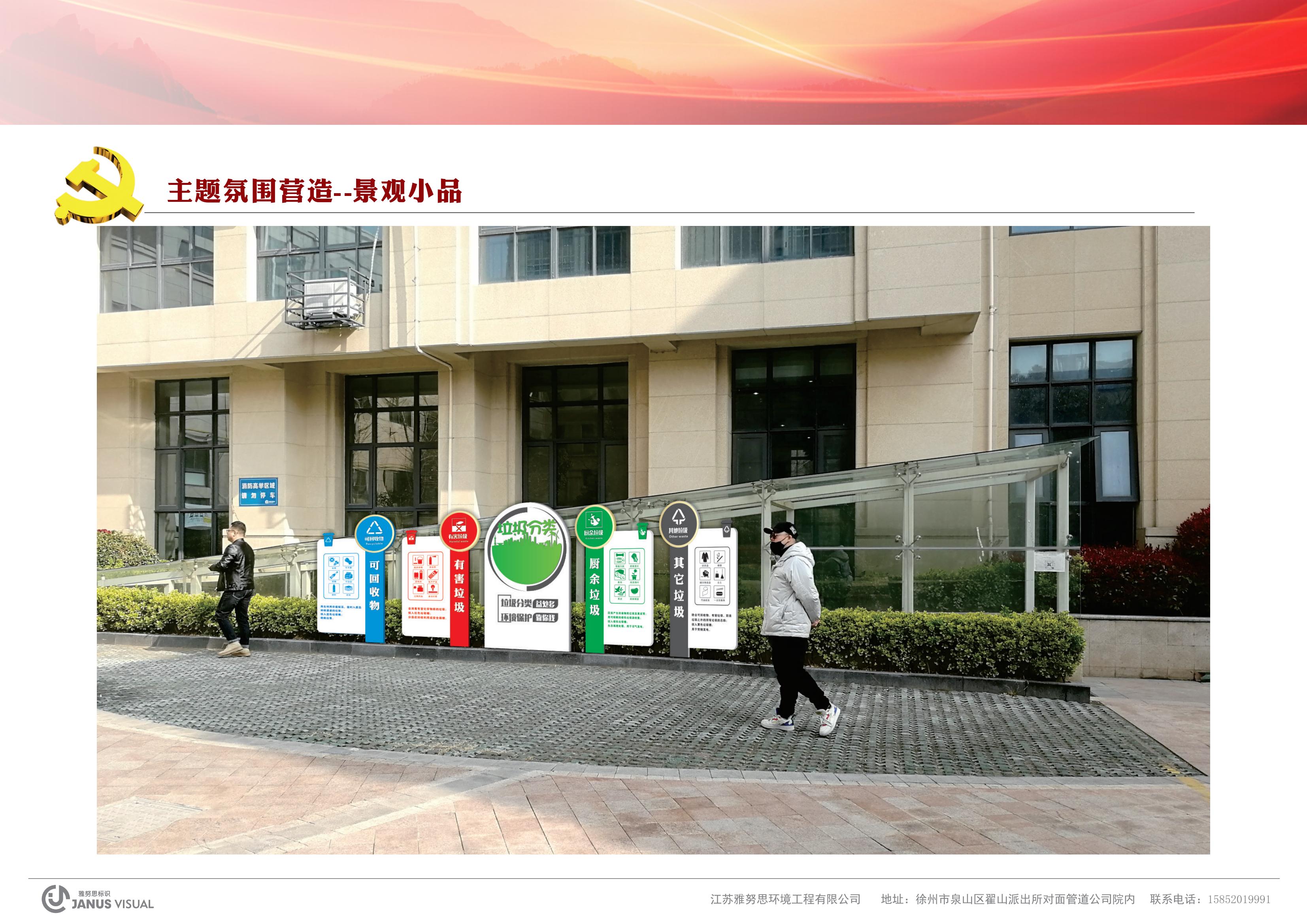 垃圾分類不僅是基本民生問題,也是生態(tài)文明建設(shè)的題中之義。為了加強(qiáng)徐州市鼓樓區(qū)生活垃圾分類管理,提高生活垃圾減量化、資源化、無(wú)害化處置水平,結(jié)合“徐州市生活垃圾分類管理辦法”,雅努思公司為國(guó)華天璽小區(qū)特設(shè)計(jì)垃圾分類 整體建設(shè)方案。